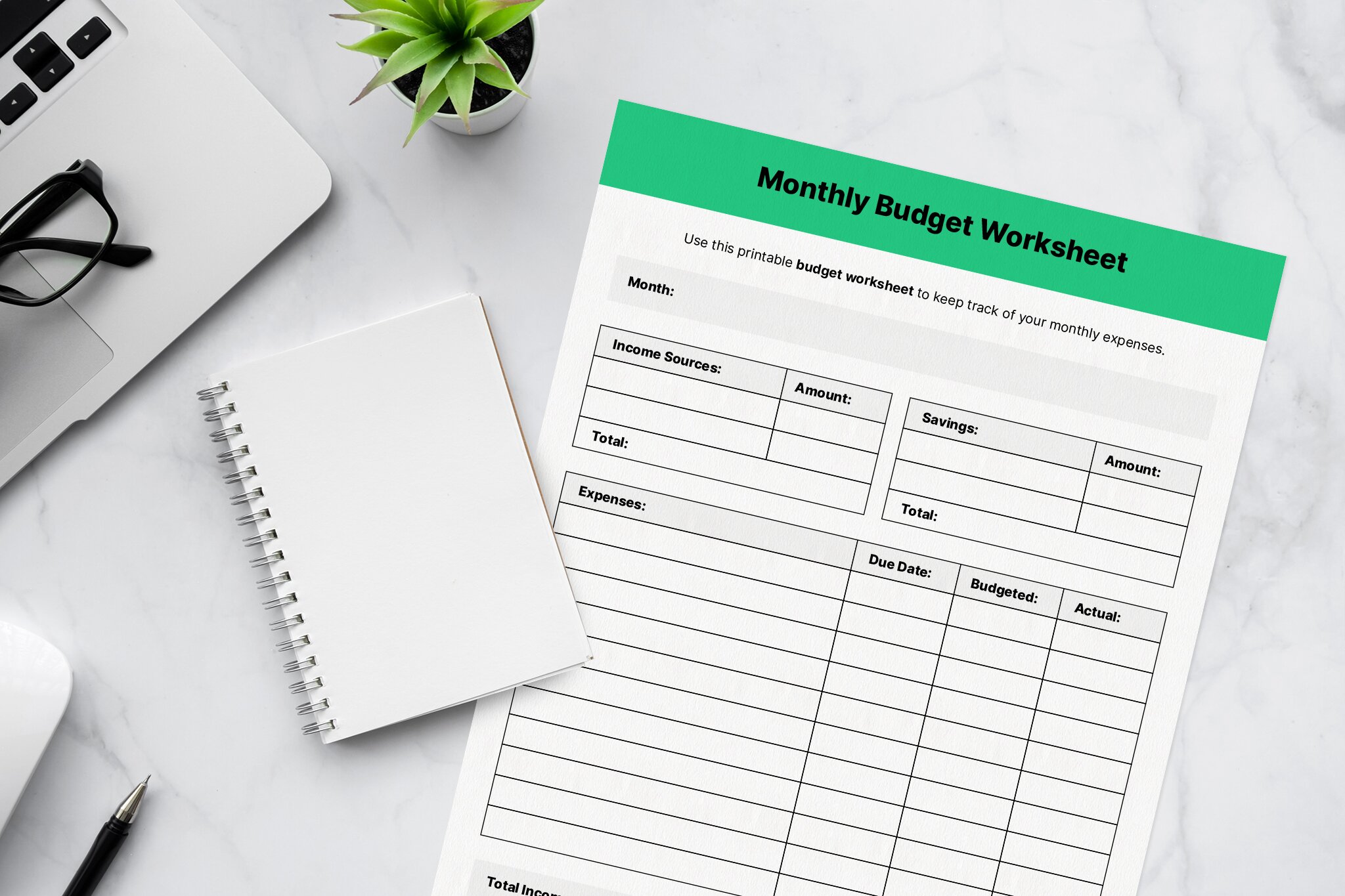 Budget tracking mobile applications like Mint, You Need a Budget and Pocket Guard can help you track your spending via app, making it easy to keep all of your information organized, accurate and in one place. If you prefer to go traditional, you can also opt to use an expense tracking worksheet to track your spending.