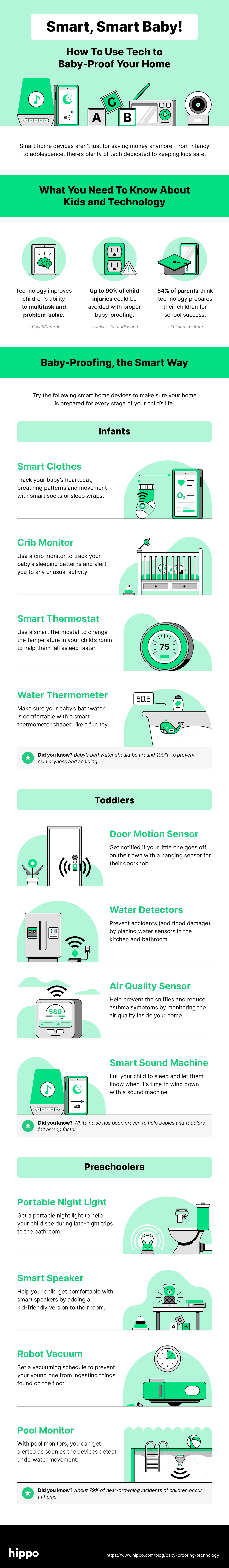 Here at Hippo, we believe in the value of technology — we even offer smart home kits free of charge to our customers for the same reason; to be proactive and preventative. Whether you bought a state-of-the-art smart home or are looking to upgrade your current space with baby-proofing technology for the first time, our guide has you covered. Wanting to take a step back and learn the basics? Check out posts on smart home trends, smart bedroom ideas and the best smart home devices before diving into the world of baby-proofing tech.