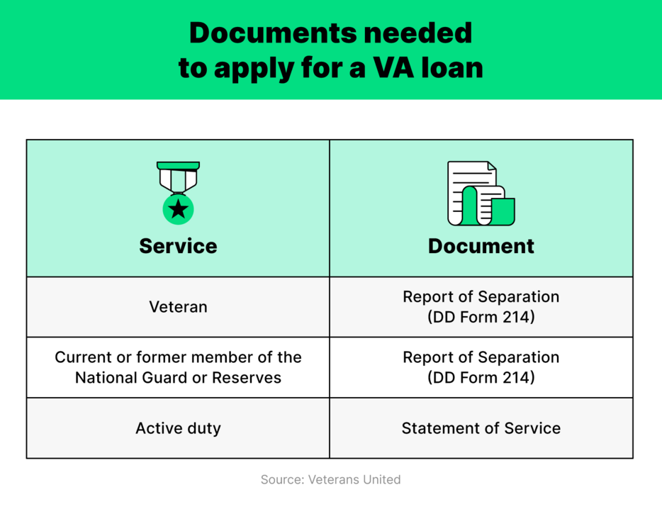 For veterans or service members looking to apply for a VA loan, you may need additional documents like service records or separation notices.