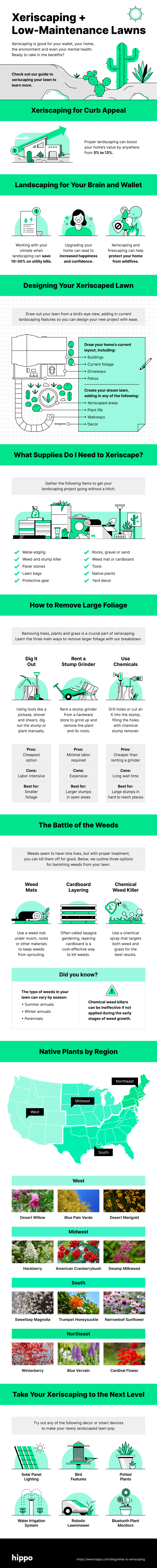 Here at Hippo, we are all about smart home technology, so you know we couldn’t get to the end of this list without mentioning a few you can add to your yard. Smart tech like water irrigation, timers, robotic lawnmowers, soil moisture meters and Bluetooth plant monitors will allow you to care for your yard with ease — whether it’s completely xeriscaped or not.